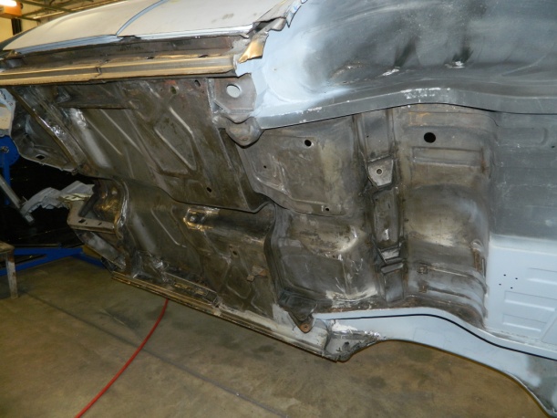 The prefabricated nearside sill is almost ready for fixing, whilst the offside sill is now in place.